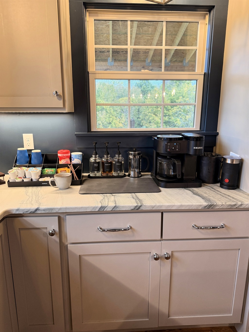 Across the home, coffee and tea stations on each level (except The Annex) make every morning effortless. Youâll also find bourbon-inspired décor, barware, and thoughtful amenities that honor Kentuckyâs craftsmanship while celebrating modern luxury. At The Rickhouse Retreat, every element â from the wellness suite to the golf lounge â was created to bring people together in comfort, conversation, and style.