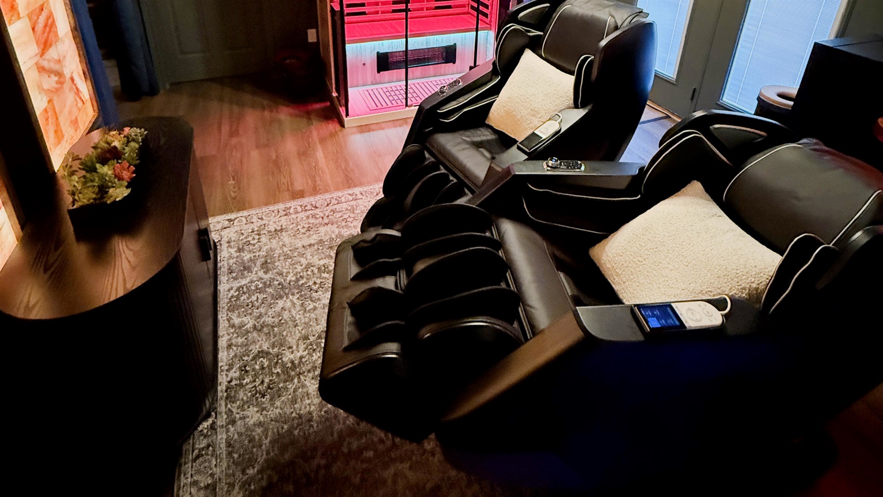 Found nowhere else on the Bourbon Trail â your private wellness sanctuary awaits on the lower level. Two full-body massage chairs deliver a deep, restorative experience, surrounded by the soft glow of Himalayan salt wall panels. Step into the infrared sauna to melt away tension, then finish with a warm towel from the custom towel bar.